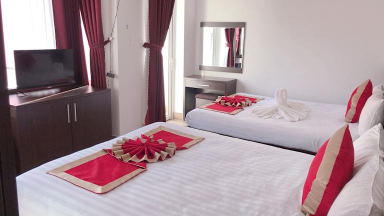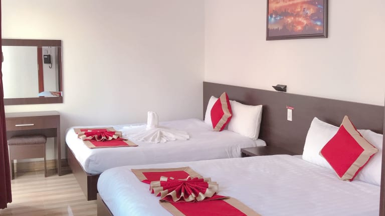 Das Dat Thien An Hotel in Da Lat bietet komfortable Zimmer und eine günstige Lage, um die Sehenswürdigkeiten der Stadt zu erkunden. Mit freundlichem Personal, kostenfreiem WLAN und einer 24-Stunden-Rezeption bietet das Hotel alles, was Sie für einen angenehmen Aufenthalt benötigen.