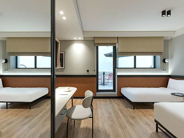 Die Zimmer sind mit einer Klimaanlage sowie Heizung ausgestattet und verfügen über ein Doppelbett oder ein Sofabett. Ein Safe, ein Schreibtisch, ein Flachbild-TV sowie kostenloses WLAN sind ebenfalls vorhanden. Jedes Zimmer hat ein eigenes Badezimmer mit Dusche, Haartrockner und kostenlosen Pflegeprodukten. Zudem sind in den Bädern Kosmetikartikel und eine Auswahl an Handtüchern vorhanden. Familien- und Nichtraucherzimmer werden angeboten.