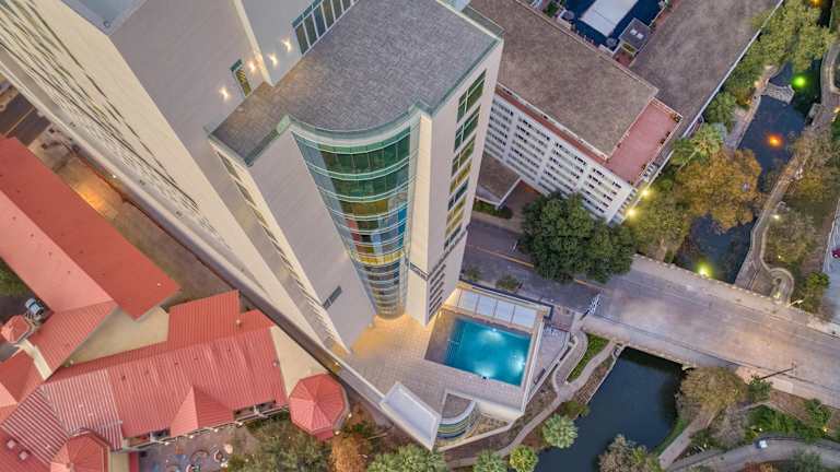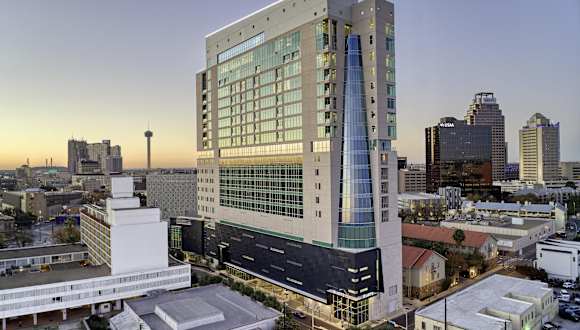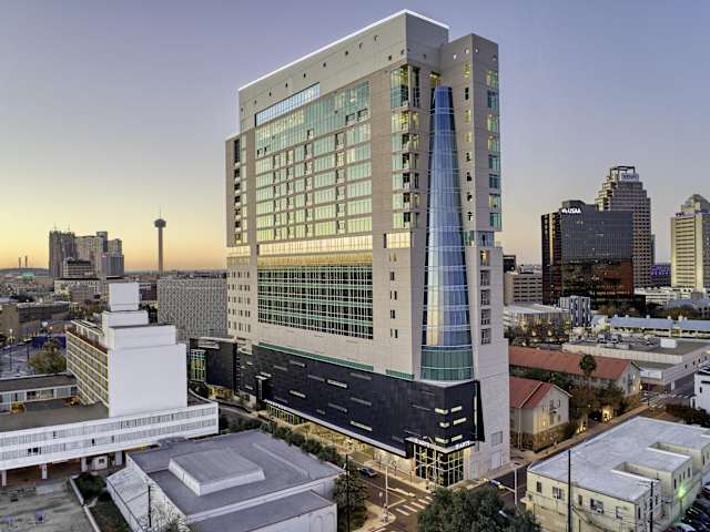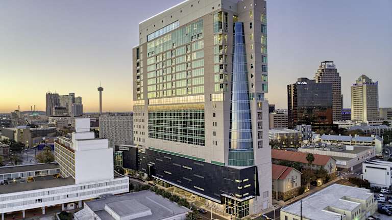 Das Hotel Thompson San Antonio - Riverwalk, by Hyatt befindet sich im Zentrum von San Antonio, in unmittelbarer Nähe zu Sehenswürdigkeiten wie dem Alamo, dem Ripleys Believe It Or Not Museum und dem Kongresszentrum Henry B. Gonzalez. Der Flughafen San Antonio ist 16 km entfernt.