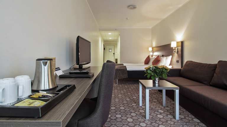 Die Zimmer im Thon PartnerHotel Baronen sind schallisoliert und bieten den Gästen einen komfortablen Rückzugsort. Sie sind modern eingerichtet und verfügen über Annehmlichkeiten wie einen Flachbild-TV, einen Schreibtisch und ein frisches, modernes Badezimmer mit Dusche. Für zusätzlichen Komfort steht den Gästen kostenfreies WLAN zur Verfügung.