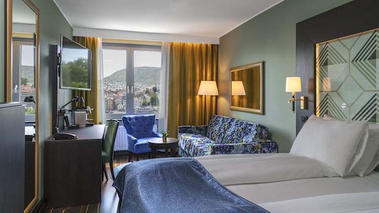 Die Zimmer im Thon Hotel Orion bieten modernen Komfort und kostenfreies WLAN. Jedes Zimmer verfügt über einen Schreibtisch und ein eigenes Bad mit einem Haartrockner. Kaffee und Tee stehen Ihnen jederzeit kostenfrei zur Verfügung. Das Hotel verfügt über rollstuhlgerechte Einrichtungen und bietet insgesamt 229 Zimmer auf 11 Etagen.