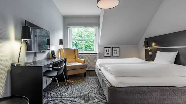 Die Zimmer im Comwell Sorø Hotel sind klassisch und gemütlich eingerichtet und bieten Ihnen einen angenehmen Rückzugsort. Jedes Zimmer verfügt über einen Schreibtisch, einen TV und Teppichboden. Hier können Sie sich entspannen und den Blick auf die grüne Umgebung genießen.