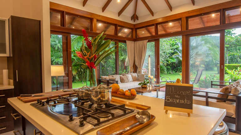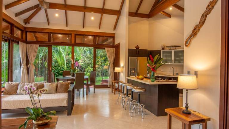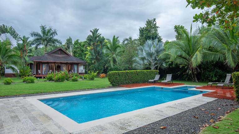 Three Monkeys - Central Cahuita - Tropical Comfort bietet eine Veranda/Patiobereich mit Gartenblick, einen Außenpool sowie eine Terrasse. Es handelt sich um eine Villa mit eigenem Pool, einem Garten und kostenlosem Privatparkplatz. Die Unterkunft ist rauchfrei und erlaubt keine Junggesellen-/Junggesellinnenabschiede oder ähnliche Feiern. Ein kostenpflichtiger Flughafentransfer wird angeboten.