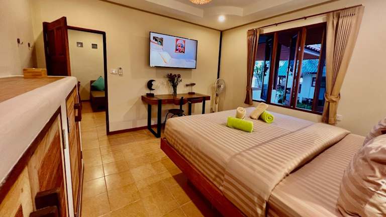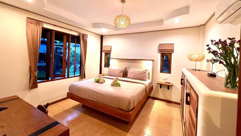 Die Three rare & private front beach villas auf Koh Phangan bieten Ihnen eine erstklassige Unterkunft nur wenige Schritte vom wunderschönen Strand Thong Sala entfernt. Hier können Sie eine entspannte Atmosphäre inmitten der Natur genießen und sich von den Annehmlichkeiten wie dem hoteleigenen Restaurant und der Bar verwöhnen lassen. Die klimatisierten Zimmer sind stilvoll eingerichtet und verfügen über modernen Komfort wie Flachbild-TV und eigenen Safe. Darüber hinaus bietet die Unterkunft einen Fahrradverleih und eine Autovermietung, um die Gegend zu erkunden.
