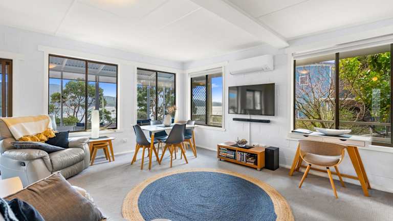 Tide & Timber - Adventure Bay bietet Übernachtungsmöglichkeiten mit Meerblick und verfügt über einen Garten sowie einen Balkon. Die Unterkunft ist direkt am Strand gelegen und bietet Zugriff auf eine Terrasse, kostenlosen Privatparkplatz und kostenfreies WLAN. Es handelt sich um ein Ferienhaus mit Klimaanlage, das aus 3 Schlafzimmern, einem Wohnzimmer, einer voll ausgestatteten Küche sowie 2 Badezimmern besteht.