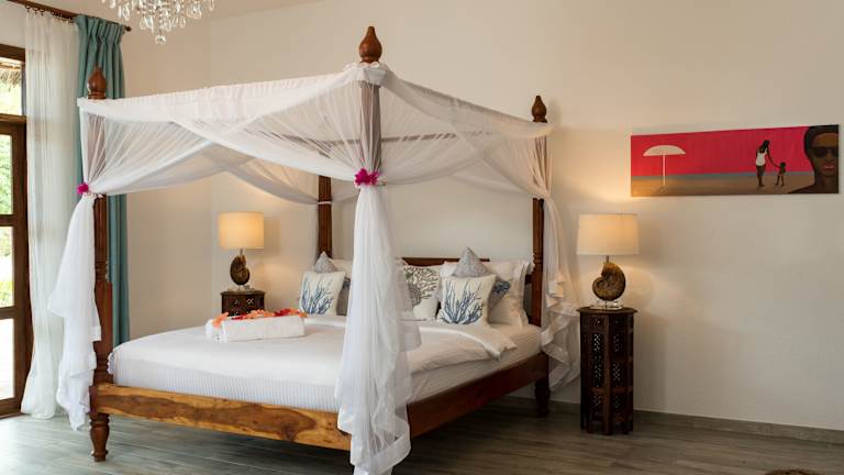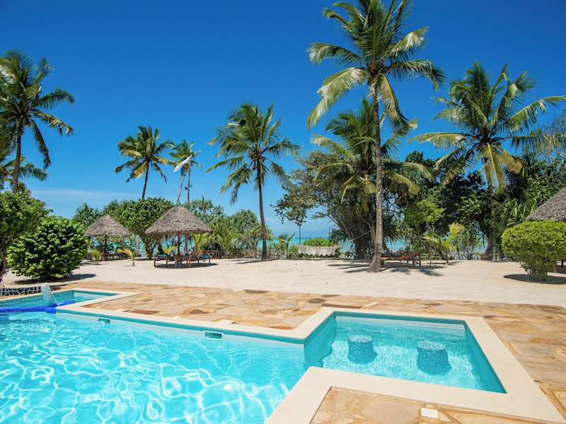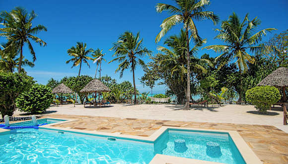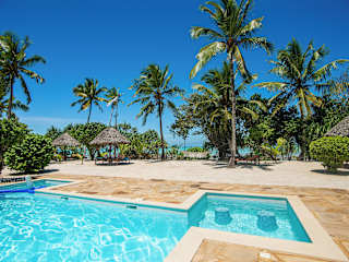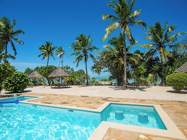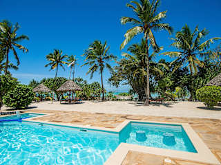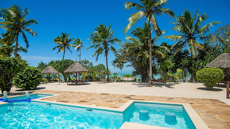 Das Tikitam Palms Boutique Hotel in Pongwe ist ein wunderschönes Hotel an der Ostküste von Sansibar. Hier erwarten Sie geschmackvoll eingerichtete Villen und Zimmer mit afrikanischen Kunstwerken und Möbeln im Kolonialstil. Genießen Sie den Blick auf den tropischen Garten oder das Meer. Das Hotel bietet Ihnen einen eigenen Strandbereich, einen Pool am Strand mit Poolbar und kostenfreies WLAN. Starten Sie Ihren Tag mit einem leckeren Frühstücksbuffet und probieren Sie regionale Meeresfrüchte sowie arabische, indische und internationale Küche in den beiden Restaurants des Hotels. Entspannen Sie sich bei kostenlosem Nachmittagstee in der Bar Mvua. Nehmen Sie an Aktivitäten wie Wasserball, Billard und lokalen Babao-Spielen teil oder nutzen Sie die kostenfreie Wassersportausrüstung. Das Hotel organisiert auch gerne Ausflüge in die Umgebung für Sie. Der Flughafen Sansibar ist ca. 46 km entfernt, aber das Hotel bietet Ihnen gegen Aufpreis einen bequemen Abholservice und Transferservice.