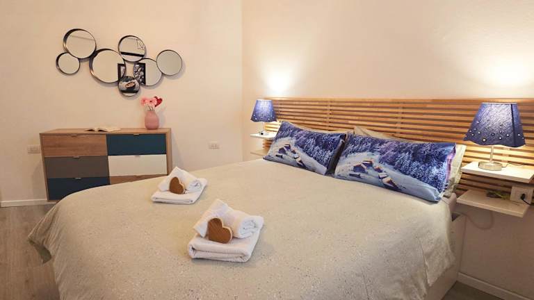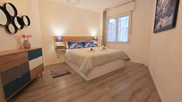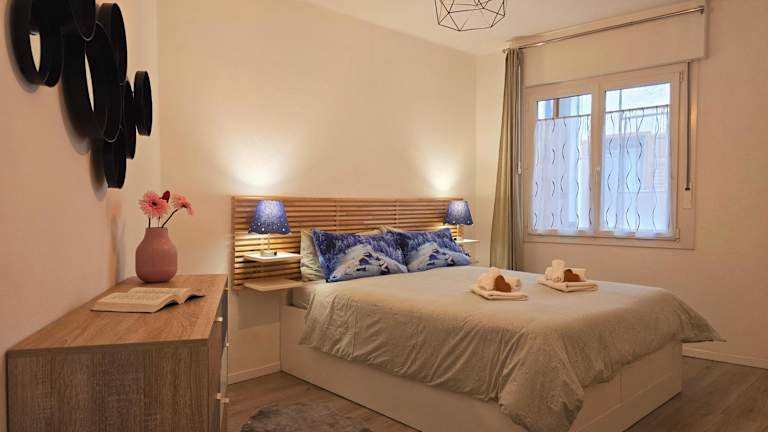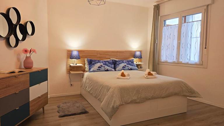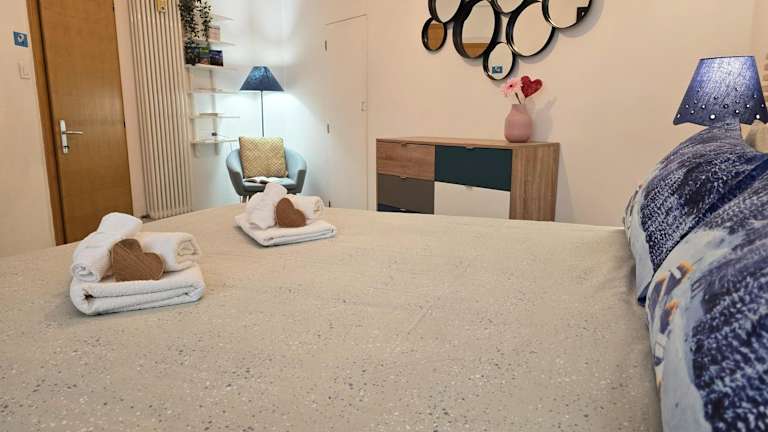 Die Ferienwohnung verfügt über einen Balkon mit Stadtblick, zwei Schlafzimmer, ein Wohnzimmer und einen Satelliten Flachbild-TV. Eine gut ausgestattete Küche sowie ein Badezimmer mit Bidet und Dusche sind ebenfalls vorhanden. Handtücher und Bettwäsche werden bereitgestellt.