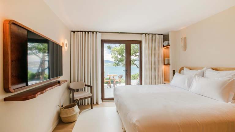 Die klimatisierten Zimmer sind ausgestattet mit Kleiderschrank, Kaffeemaschine, Minibar, Safe, Flachbild-TV, eigener Terrasse und Badezimmer mit Dusche. Zur Ausstattung gehören auch Bettwäsche und Handtücher.