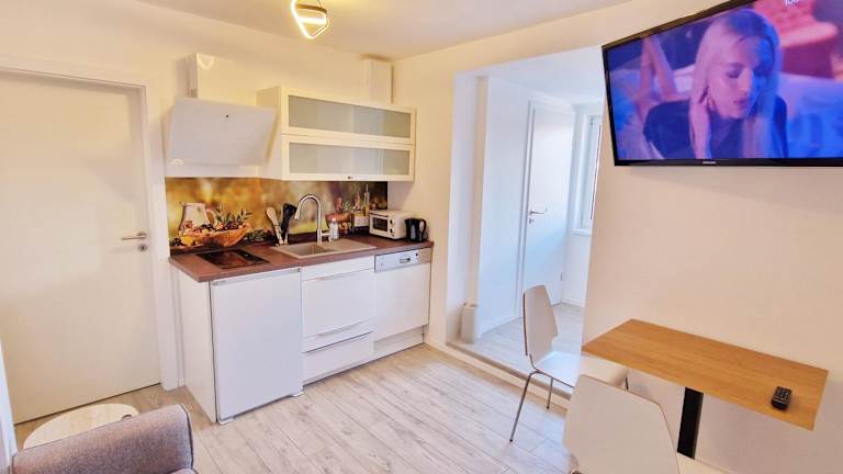 Die Apartments sind mit einem Flachbild-TV ausgestattet und verfügen über ein eigenes Badezimmer mit einem Bidet und einem Haartrockner. Die Küche ist mit einem Kühlschrank, einem Geschirrspüler und einer Herdplatte eingerichtet.