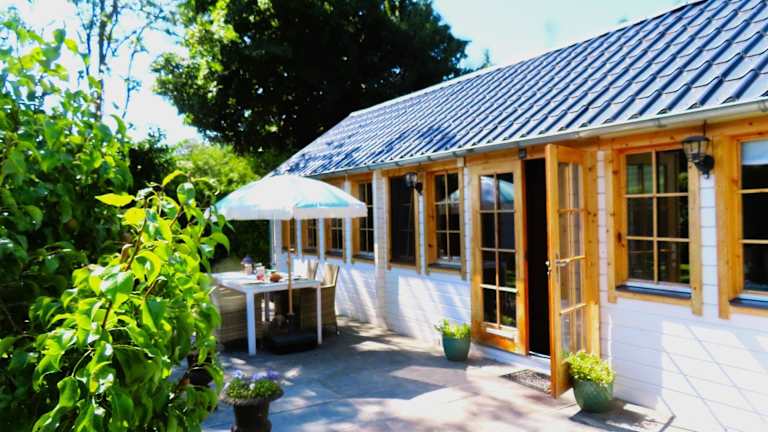 Das Ferienhaus umfasst zwei Schlafzimmer, ein Wohnzimmer mit Flachbild-TV, ein Badezimmer mit Dusche sowie eine Terrasse mit Blick auf den Garten. Die Küche ist mit Kühlschrank und Geschirrspüler ausgestattet. Handtücher und Bettwäsche werden gestellt.