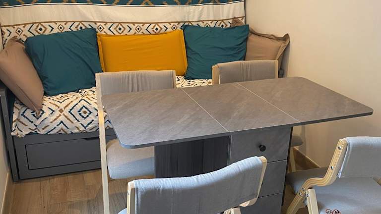 Das Ferienhaus verfügt über ein Schlafzimmer und ist ausgestattet mit einer voll ausgestatteten Küche, die einen Kühlschrank und einen Geschirrspüler beinhaltet. Zusätzlich gibt es einen Flachbild-TV, einen Sitzbereich und ein Badezimmer mit Dusche. Handtücher sowie Bettwäsche werden zur Verfügung gestellt.