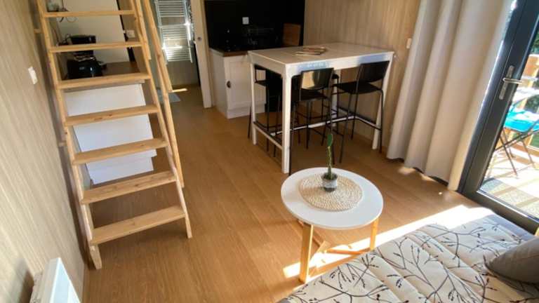 Das Ferienhaus im Tiny et Jacuzzi Charente Maritime verfügt über ein klimatisiertes Schlafzimmer, ein Wohnzimmer, eine voll ausgestattete Küche mit Kühlschrank und Kaffeemaschine sowie ein Badezimmer mit Dusche und Whirlpool. Handtücher und Bettwäsche werden gestellt, sodass Sie sich um nichts kümmern müssen.