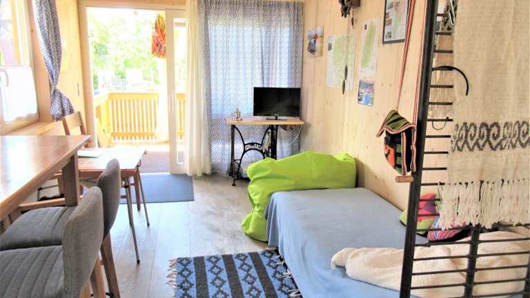 Das Ferienhaus besteht aus einem Schlafzimmer, einem Wohnzimmer sowie einer voll ausgestatteten Küchenzeile mit Kühlschrank und Kaffeemaschine. Es verfügt über ein Badezimmer mit Dusche und Haartrockner. Bettwäsche und Handtücher sind vorhanden. Allergikerfreundliche Zimmer sind verfügbar.