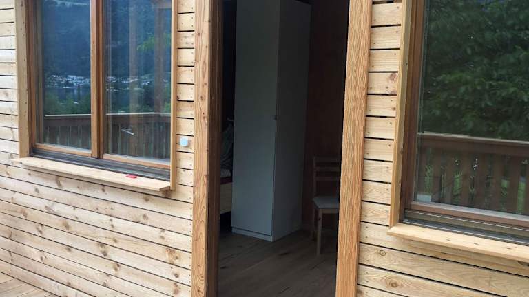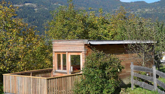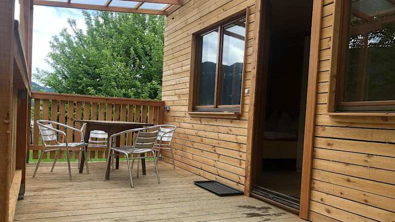 Die Zimmer im Tiny Häuschen beinhalten eine Terrasse mit Bergblick, einen Sitzbereich und einen Satelliten-Flachbild-TV. Das eigene Badezimmer verfügt über eine Dusche.