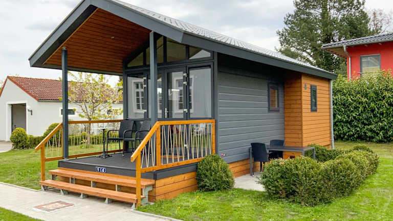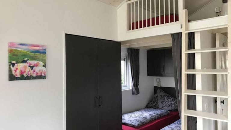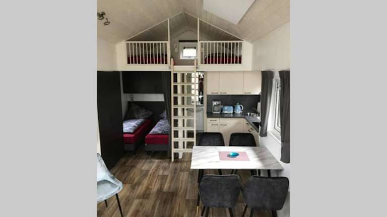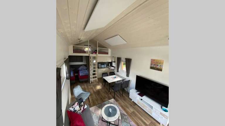 Das Apartment im Tiny House 1d verfügt über 2 Schlafzimmer und 1 Badezimmer. Es bietet Platz für bis zu 4 Personen und ist mit allem ausgestattet, was Sie für einen angenehmen Aufenthalt benötigen. Zur Ausstattung gehören eine voll ausgestattete Küche, ein Essbereich, ein Flachbild-TV und kostenfreies WLAN. Von der Terrasse aus haben Sie einen schönen Blick auf den Garten. Bettwäsche und Handtücher werden gestellt.