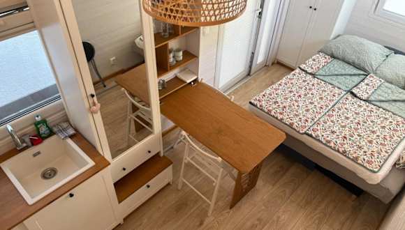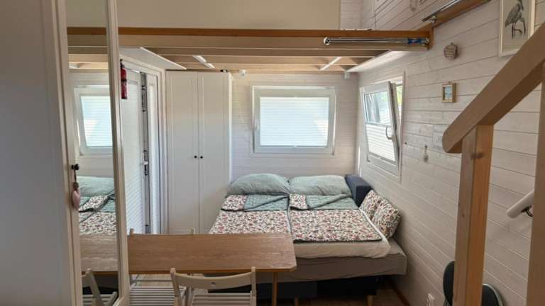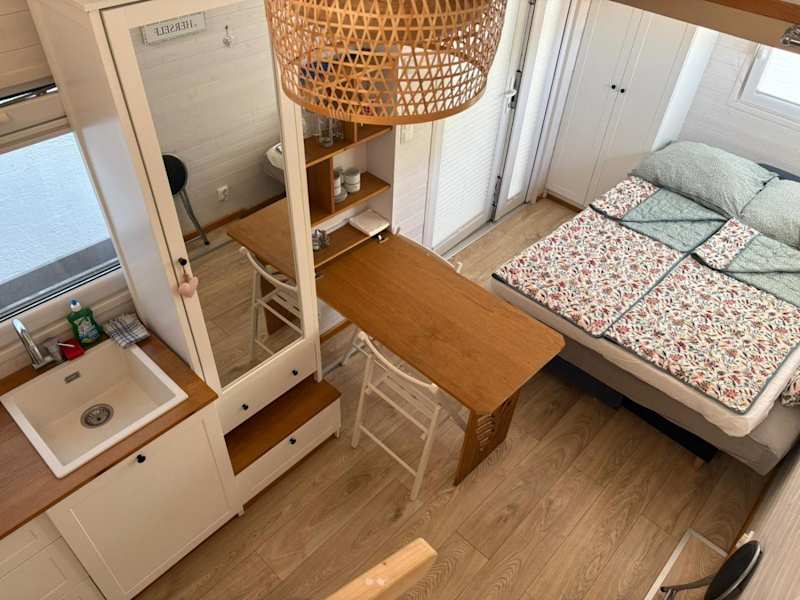 Das Tiny House am See bietet Übernachtungsmöglichkeiten in einem privaten Ambiente. Die Unterkunft ist mit kostenlosem WLAN und einem Flachbild-TV ausgestattet und verfügt über eine Terrasse sowie eine gut ausgestattete Küchenzeile. Die Unterkunft wird von einem privaten Gastgeber geführt und es gelten bestimmte Altersbeschränkungen für den Check-in und Gäste.