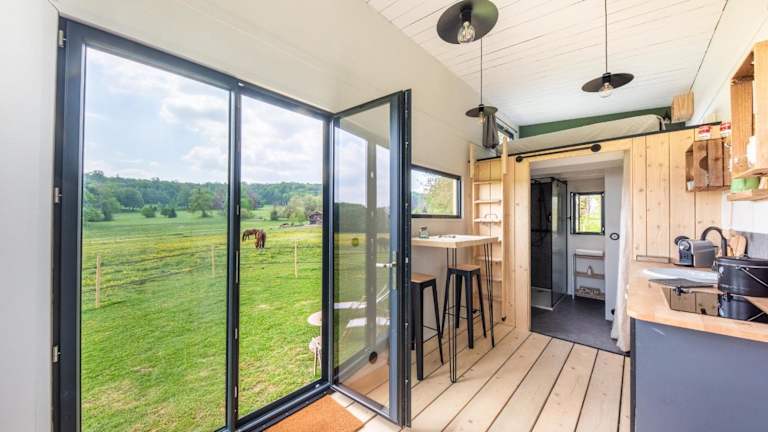 Das Tiny House Centre équestre - 35 minutes de Paris bietet ein gemütliches Ferienhaus mit 1 Schlafzimmer, einem Wohnzimmer und einer voll ausgestatteten Küche. Die Unterkunft ist ideal für Paare oder kleine Gruppen, die eine komfortable und private Unterkunft suchen.
