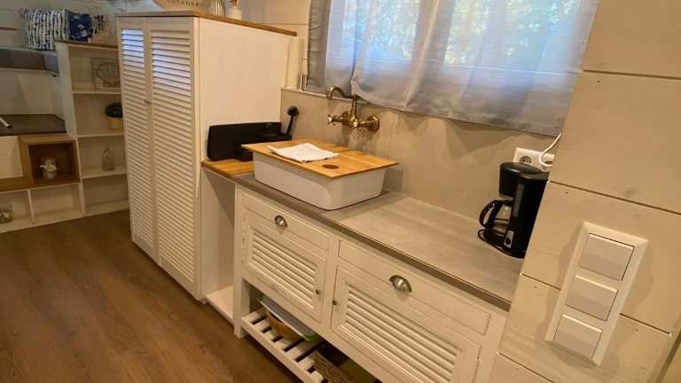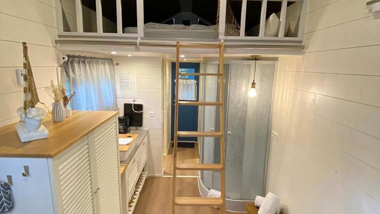 Tiny House Ems im PIER9 Tiny House Hotel bietet eine moderne und gut ausgestattete Unterkunft in einem besonderen Wohnkonzept. Kostenloses WLAN und Privatparkplätze sind in der Unterkunft verfügbar. Die Wohneinheiten zeichnen sich durch ihre Terrasse mit Blick auf den Garten aus.