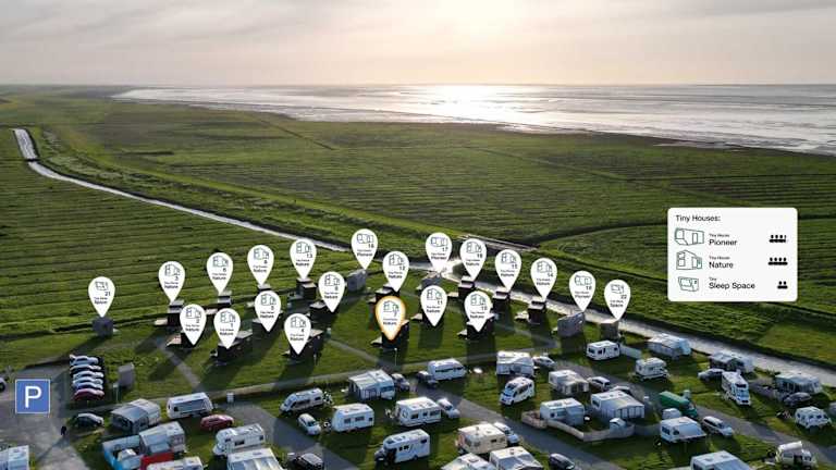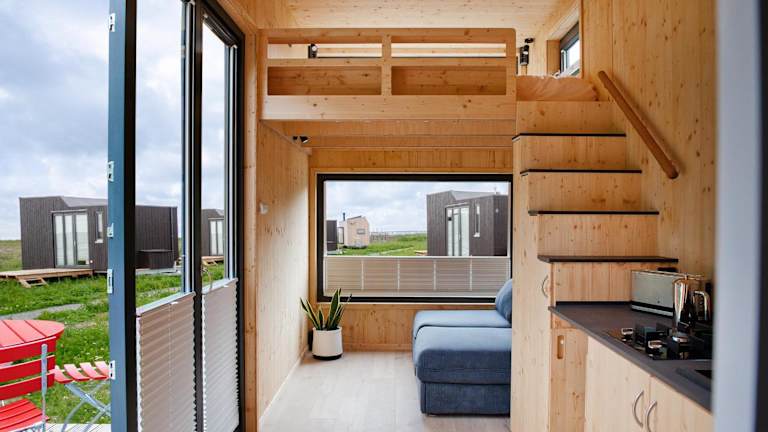 Tiny House Nature 7 Innenlage - Green Tiny Village Harlesiel bietet Übernachtungsmöglichkeiten in Form eines Ferienhauses mit kostenlosem WLAN und einem Balkon. Die Unterkunft ist für Nichtraucher ausgelegt und erlaubt keine Feiern wie Junggesellenabschiede.