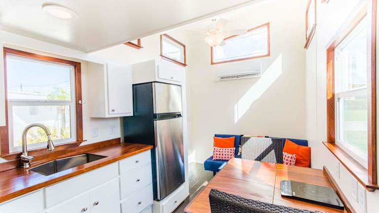 Im Tiny House Siesta haben Sie die Möglichkeit, Ihre Mahlzeiten selbst zuzubereiten, da jedes Haus über eine Küchenzeile verfügt. Sie können frische Zutaten kaufen und Ihre Lieblingsgerichte zubereiten, um den Komfort eines eigenen Zuhauses zu genießen. Alternativ können Sie die vielen Restaurants in der Umgebung erkunden und lokale Köstlichkeiten probieren. Sarasota und die Insel Siesta Key bieten eine Vielzahl von gastronomischen Einrichtungen, die für jeden Geschmack etwas bieten.
