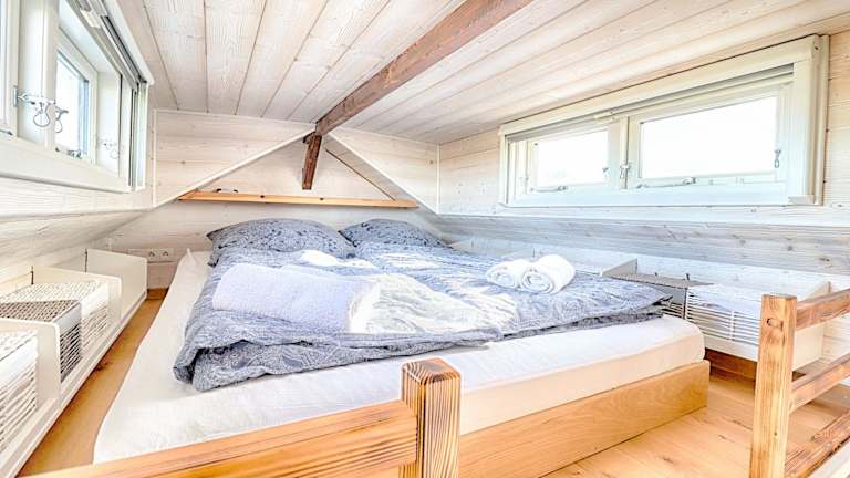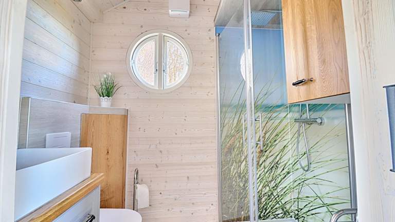 Die Zimmer im Tiny House sind mit einem Sitzbereich, einem Satelliten-Flachbild-TV und einer voll ausgestatteten Küchenzeile versehen. Zum Inventar gehören ein Kühlschrank, ein Ofen, eine Herdplatte, ein Toaster, eine Kaffeemaschine und ein Wasserkocher. Darüber hinaus ist ein eigenes Badezimmer mit Dusche vorhanden.