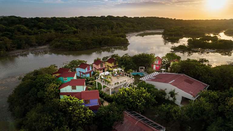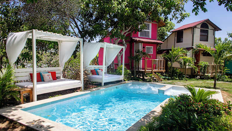 Tiny Village Cartagena Boutique Resort befindet sich in Tierra Bomba, nur 300 Meter vom Strand Playa Punta Arenas entfernt.