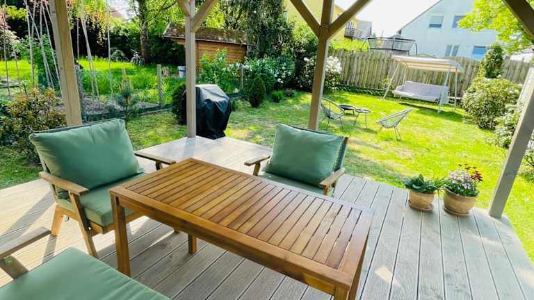 Das Ferienhaus verfügt über ein Schlafzimmer und ein Badezimmer. Die Ausstattung umfasst Bettwäsche, Handtücher, einen Flachbild-TV, einen Essbereich sowie eine voll ausgestattete Küche. Eine Terrasse mit Gartenblick ist ebenfalls vorhanden. Die Unterkunft bietet schallisolierte Räume und ist eine Nichtraucherunterkunft.