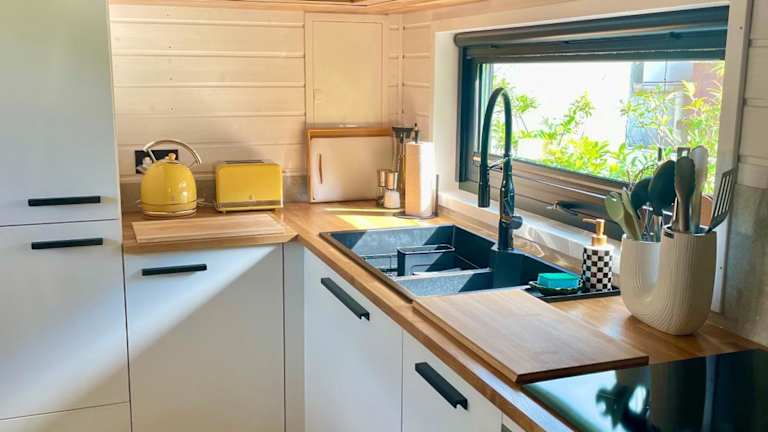 Tinyhaus Josie von Tinyhaus Steinhude bietet eine komfortable Unterkunft mit einem Garten und Grillmöglichkeiten. Die klimatisierte Ferienhaus-Option gewährleistet einen angenehmen Aufenthalt und ist privat geführt. Es wird kein Zutritt für Junggesellen-/Junggesellinnenabschiede und ähnliche Feiern gewährt.