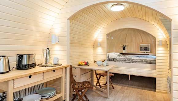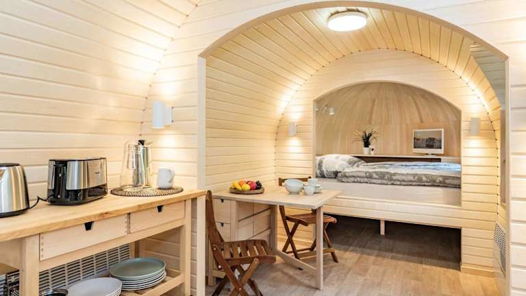 Das Ferienhaus verfügt über ein Wohnzimmer und eine voll ausgestattete Küchenzeile, die mit einem Kühlschrank und einer Herdplatte ausgestattet ist. Handtücher und Bettwäsche werden zur Verfügung gestellt.