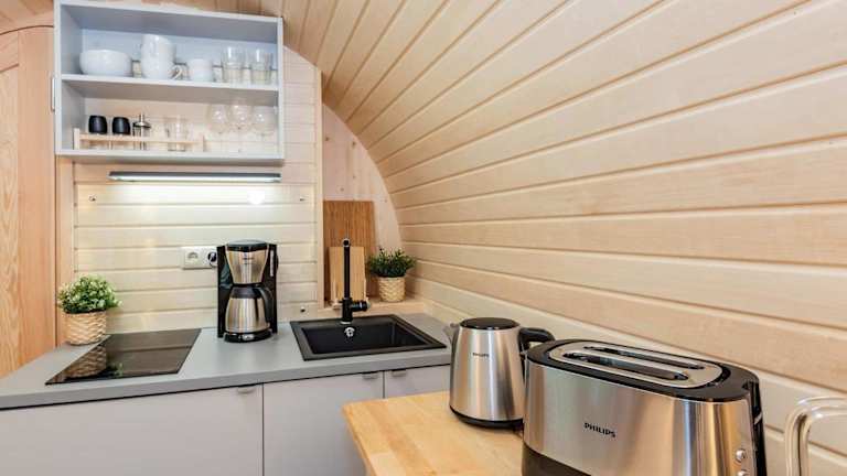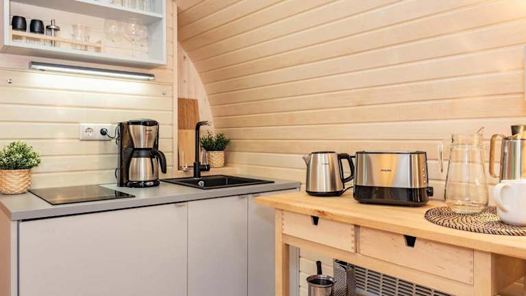 Tinyhouse 1 ist ein Ferienhaus, das eine Terrasse bietet sowie kostenlose Privatparkplätze. Es bietet eine ruhige und naturnahe Umgebung.