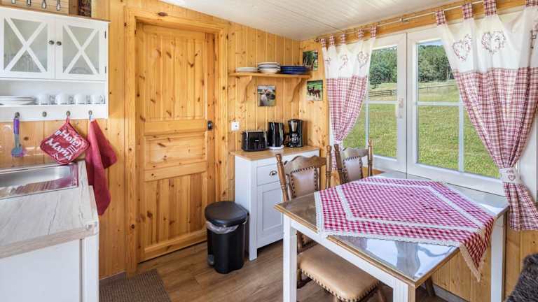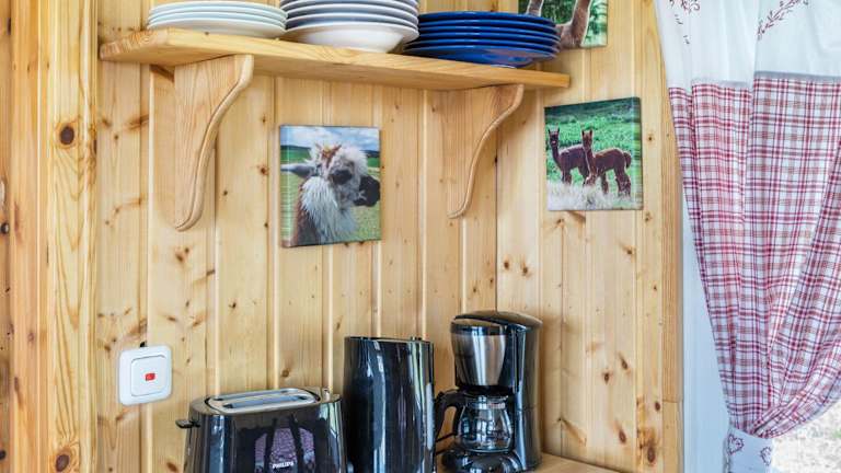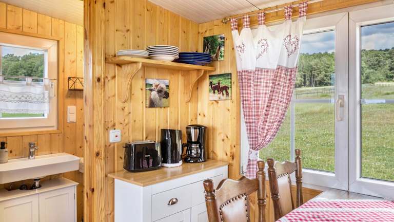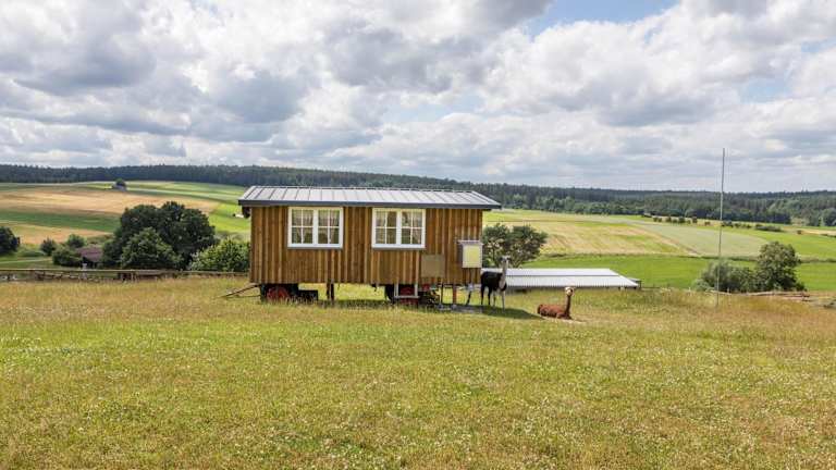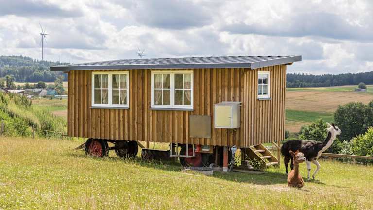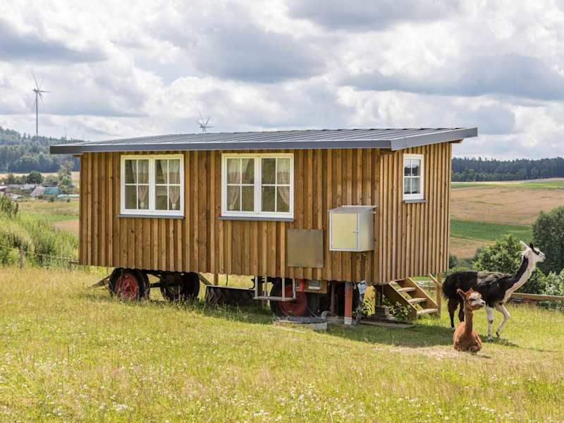 Das Tinyhouse Alpakawiese ist eine Unterkunft mit Gartenblick, die über eine Terrasse und eine Kaffeemaschine verfügt. Es handelt sich um ein Ferienhaus, das moderne Annehmlichkeiten bietet.