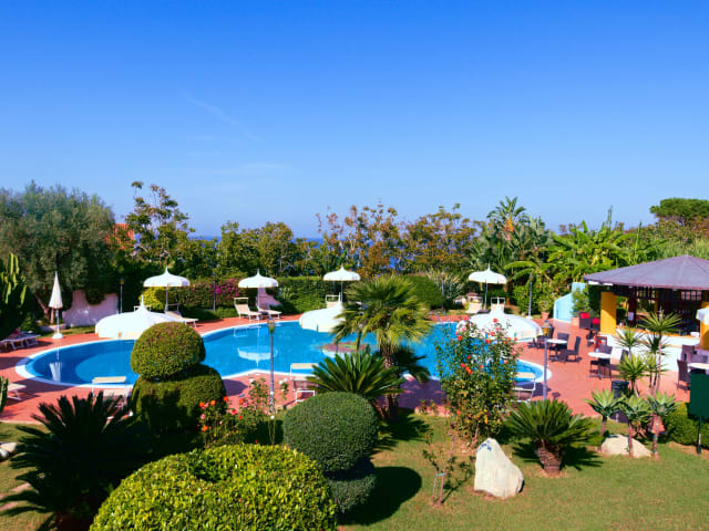 Das familiengeführte 4-Sterne-Hotel liegt nur 1 km von der Tyrrhenischen Küste und den Äolischen Inseln entfernt. Das Hotel bietet verschiedene Zimmertypen: Classic, Pool Side, Connecting, Junior Suite und Suite in einem der Pools.