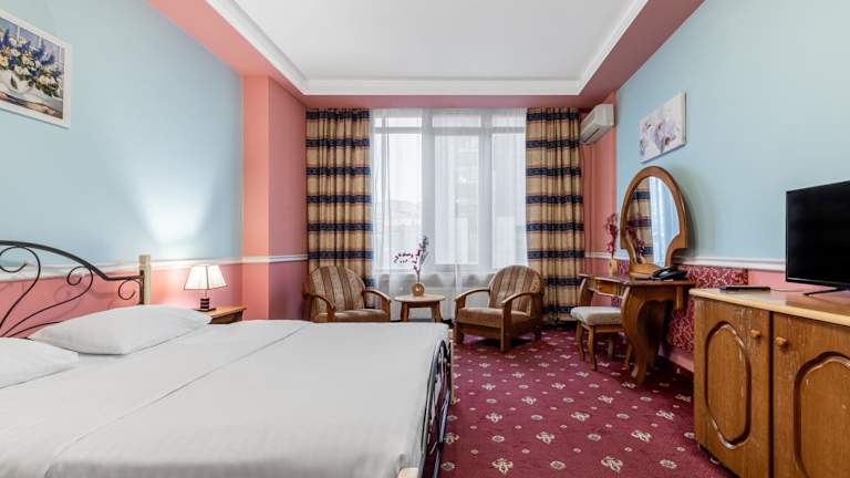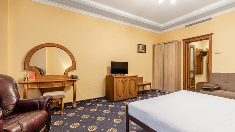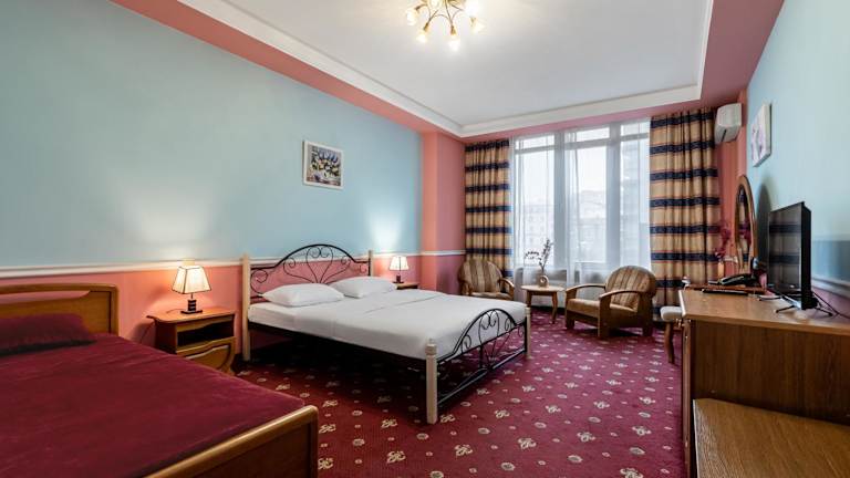 Das Tiso Apart Hotel befindet sich in der Zhylyans'ka Straße 59, nur 1,1 km vom Bahnhof Kiew und etwa 10 Minuten Fußweg vom Botanischen Garten entfernt. Der Boulevard Chreschtschatyk ist nach einer 10-minütigen Autofahrt erreichbar. Der Flughafen Boryspil liegt 35 km entfernt.