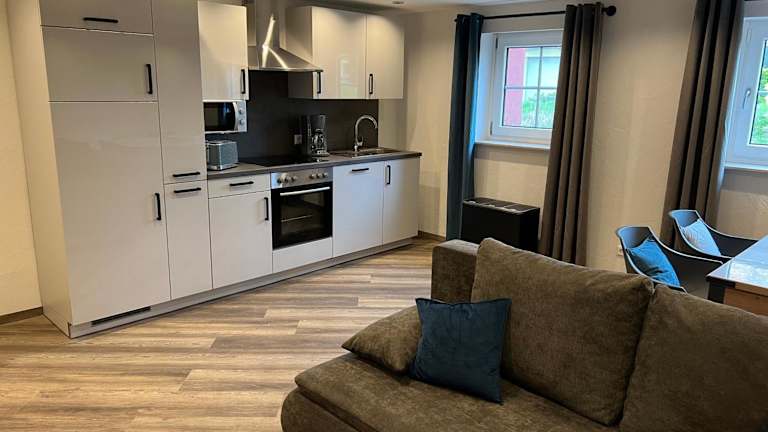 Das TL Apartments - 2 Zimmer Apartment JOSHA bietet eine 52 qm große Ferienwohnung im Souterrain, ausgestattet mit modernem Komfort. Es stehen kostenloses WLAN und ein Privatparkplatz zur Verfügung. Die Unterkunft erlaubt Haustiere, wobei möglicherweise Gebühren anfallen können. Der Check-in ist ab 16:00 Uhr möglich, der Check-out muss bis 10:00 Uhr erfolgen.