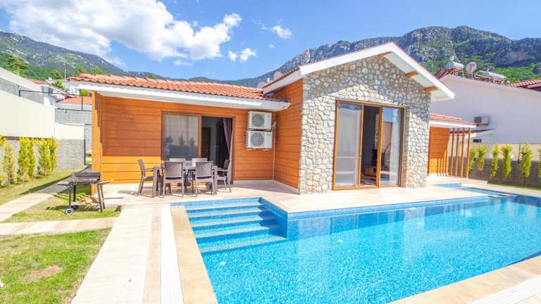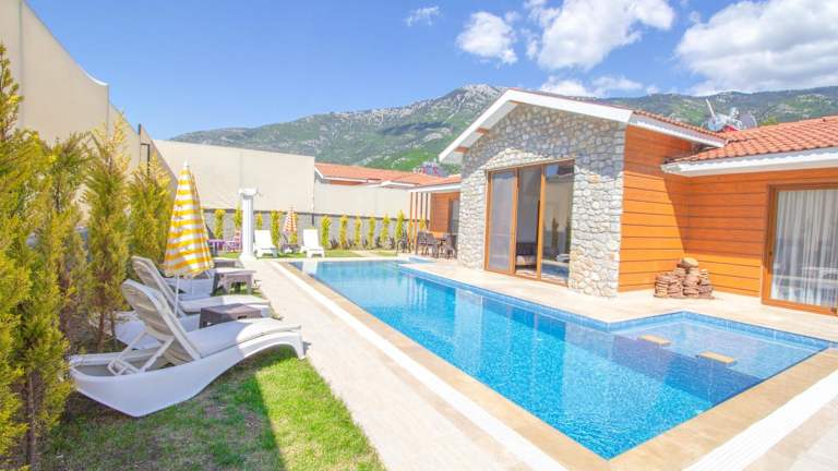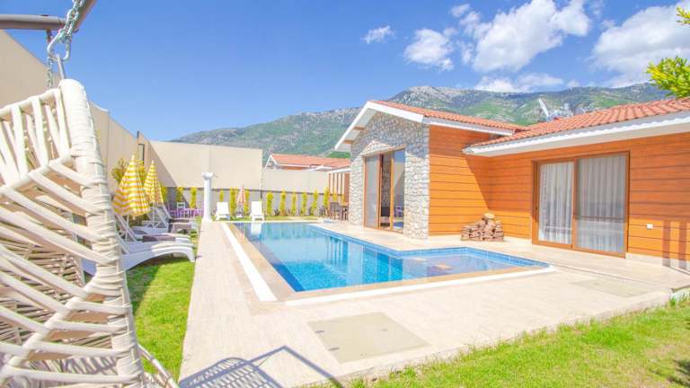 Die Tlos Deluxe 3+1 Villa ist eine Unterkunft mit einem privaten Außenpool, Garten und Terrasse. Die Villa bietet Übernachtungsmöglichkeiten mit kostenlosem WLAN und einem Blick auf die Berge.
