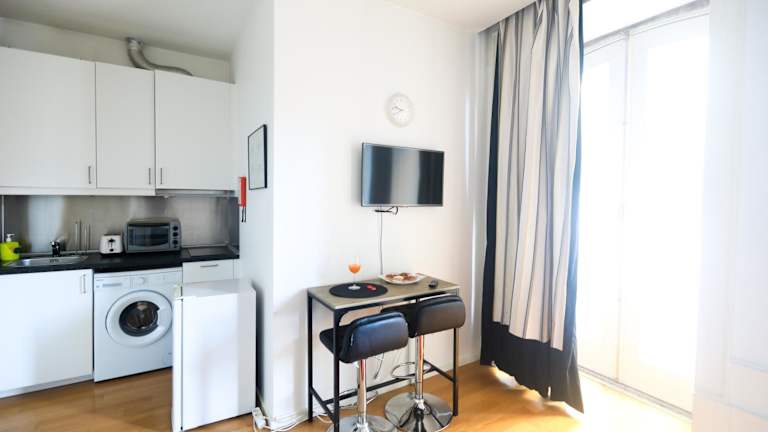 Die renovierten Apartments im TM Guest House bieten modernes Dekor und Parkettböden. Die raumhohen Fenster sorgen für viel Tageslicht und bieten einen Blick auf die Straße. Die Unterkunft verfügt über Studios und Apartments mit 1 oder 2 Schlafzimmern. Alle Apartments haben eine voll ausgestattete Küche oder Küchenzeile, in der Platz für 2, 3 oder 4 Personen ist. Zur Ausstattung gehören ein Kühlschrank, ein Herd, eine Dunstabzugshaube, eine Waschmaschine, ein Flachbild-TV und eine Klimaanlage. Einige Küchen verfügen auch über einen Backofen, eine Mikrowelle und eine Kaffeemaschine. Handtücher und Bettwäsche werden gestellt.