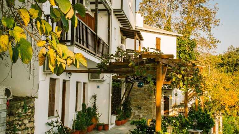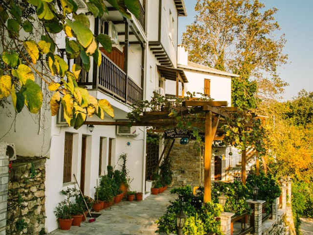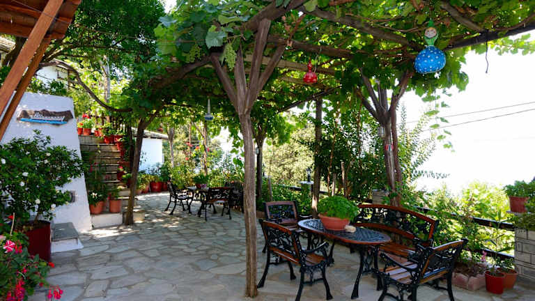 To Mpalkoni ist ein traditionell erbautes Hotel, das sich durch seine lokale Pelion-Architektur auszeichnet. Die Unterkunft bietet klimatisierte Übernachtungsmöglichkeiten mit Blick auf die Ägäis und kostenlosen WLAN-Zugang in allen Bereichen. Zu den Einrichtungen gehören ein üppiger Garten mit Pflanzen und Bäumen sowie eine Sonnenterrasse mit Tischen und Stühlen.