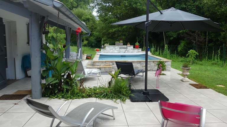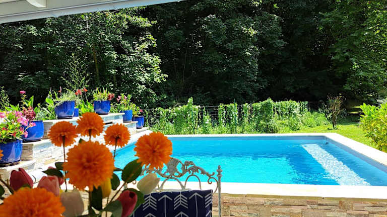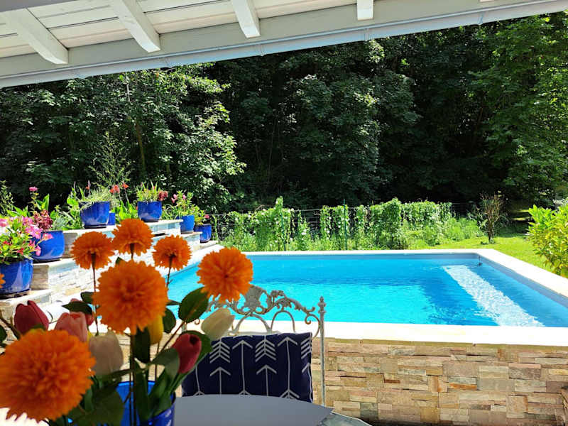 Das Ferienhaus verfügt über 2 Schlafzimmer, ein Wohnzimmer und eine gut ausgestattete Küche. Es bietet Platz für bis zu 4 Personen und ist ideal für Familien oder kleine Gruppen. Das Highlight des Hauses ist der beheizte Pool, der zu entspannten Stunden unter der Sonne einlädt. Die Terrasse bietet einen herrlichen Blick auf den Garten und den Pool. Handtücher und Bettwäsche werden gestellt, um Ihren Aufenthalt so angenehm wie möglich zu gestalten.