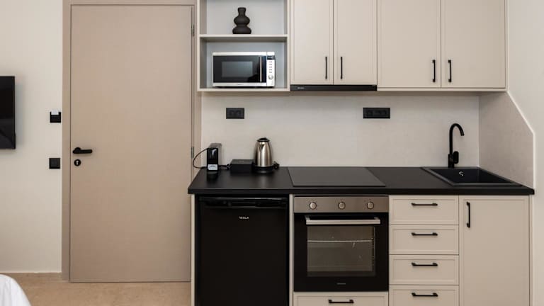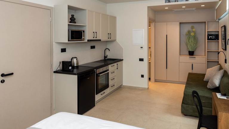Die klimatisierten Zimmer im Tokyo Studios verfügen über Fliesenböden und ein eigenes Badezimmer. Jedes Zimmer ist mit einem Flachbild-TV, einem Kleiderschrank, einer ausgestatteten Küche sowie einem Balkon mit Stadtblick ausgestattet. Die Badezimmer sind voll ausgestattet und bieten eine Dusche sowie einen Haartrockner.