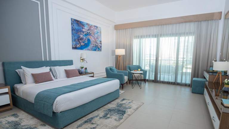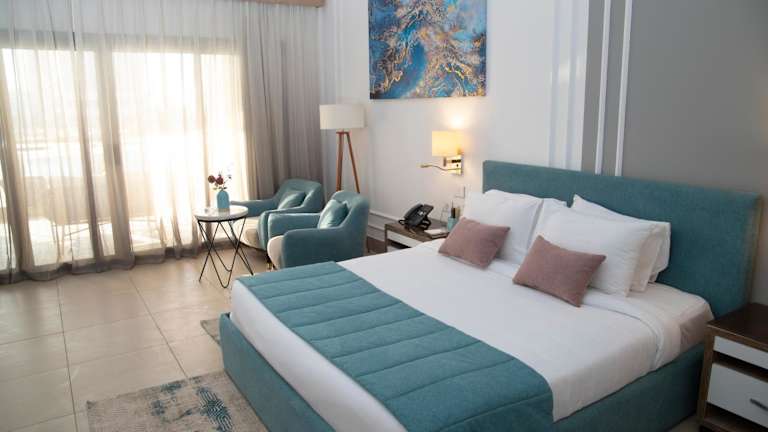 Die klimatisierten Zimmer sind ausgestattet mit einem Kleiderschrank, Wasserkocher, Minibar, Safe, Flachbild-TV und einem eigenen Badezimmer mit Dusche. Bettwäsche und Handtücher sind ebenfalls vorhanden.