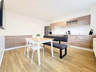 Die Ferienwohnung ist ausgestattet mit zwei Schlafzimmern, einer Küche, die mit einem Kühlschrank und einem Geschirrspüler versehen ist, sowie einem Badezimmer mit Dusche, Haartrockner und Waschmaschine. Handtücher und Bettwäsche werden bereitgestellt.