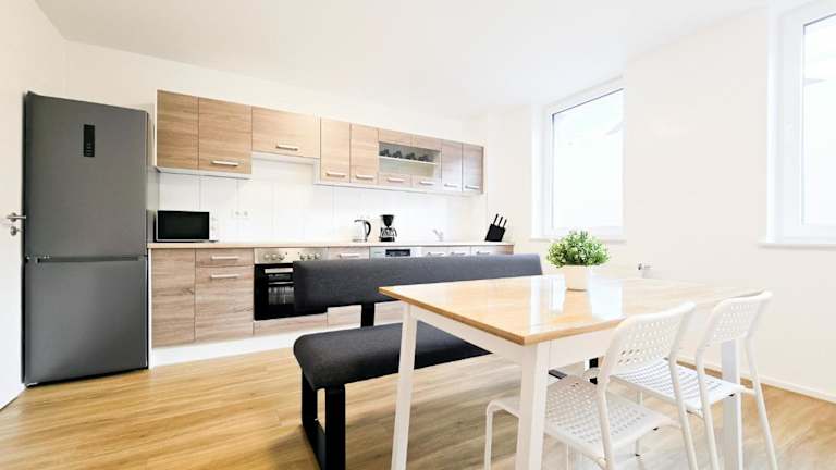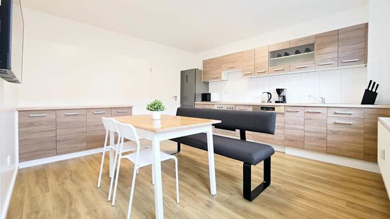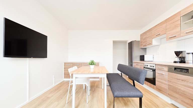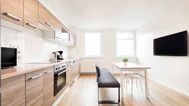 Tolstov Apartments - 2 Room Apartment - 25 Min to Messe DUS bietet Übernachtungsmöglichkeiten mit kostenlosem WLAN und einem Flachbild-TV. Die Ferienwohnung verfügt über zwei Schlafzimmer sowie eine moderne Küche und ist für Nichtraucher geeignet.