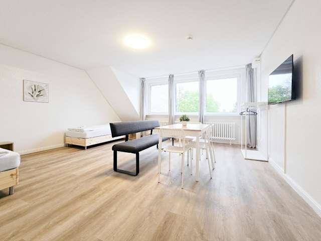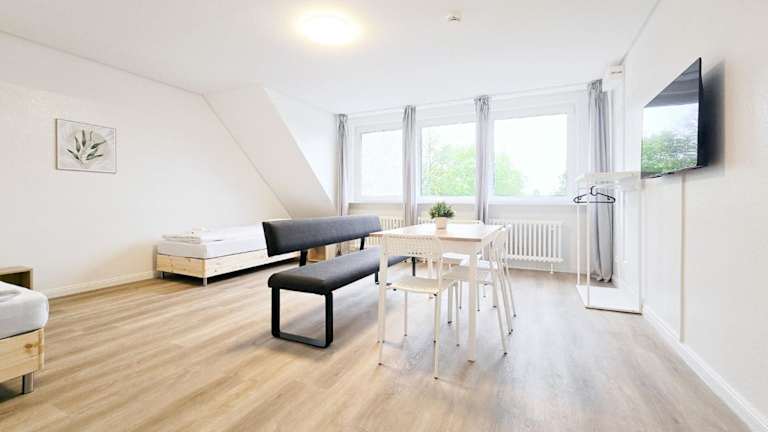 Die Unterkunft befindet sich im Viertel Buchholz von Duisburg, in einer Entfernung von 6,4 km zur Einschornsteinsiedlung und 6,9 km zum Hauptbahnhof Duisburg. Der Flughafen Düsseldorf liegt 11 km entfernt.