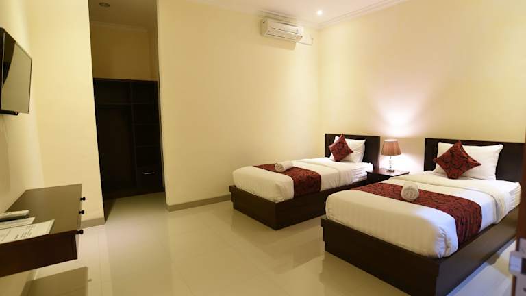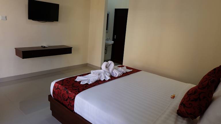 Die Zimmer im Tom's Inn Pecatu sind komfortabel und stilvoll eingerichtet. Jedes Zimmer verfügt über einen eigenen Balkon mit Blick auf den Pool, wo Sie sich entspannen und die Aussicht genießen können. Ein TV und ein eigenes Bad gehören ebenfalls zur Ausstattung.