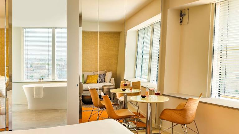 Die Zimmer sind Nichtraucherzimmer und variieren in der Größe von ca. 25 m² bis 40 m². Sie sind mit King Size Betten, Klimaanlage, WLAN, Kühlschrank, Minibar, Nespresso-Maschine und Safe ausgestattet. Badezimmer mit Dusche oder Badewanne sind ebenfalls vorhanden. Zudem sind einige Zimmer mit Blick auf den Fluss oder die Stadt verfügbar.
