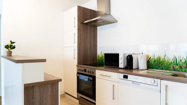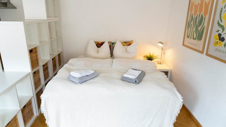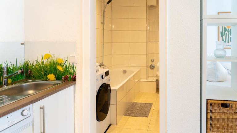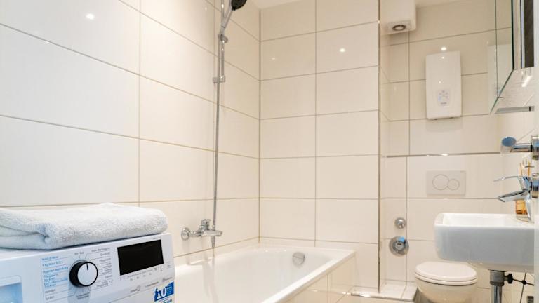 Die Unterkunft umfasst ein Schlafzimmer, eine voll ausgestattete Küche mit Kühlschrank und Geschirrspüler, sowie eine Waschmaschine. Das Badezimmer ist mit kostenlosen Pflegeprodukten und einem Haartrockner ausgestattet. Handtücher und Bettwäsche werden bereitgestellt.