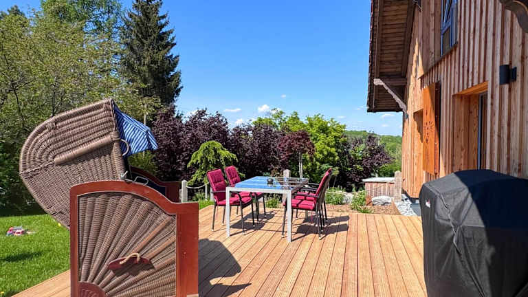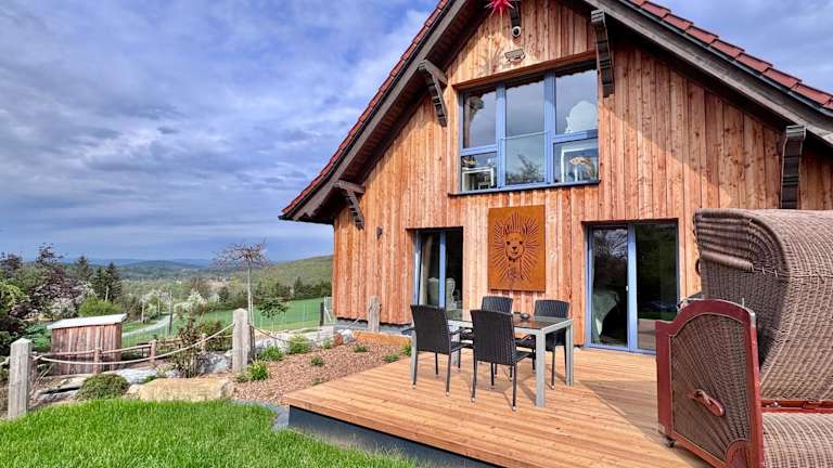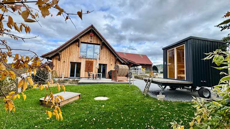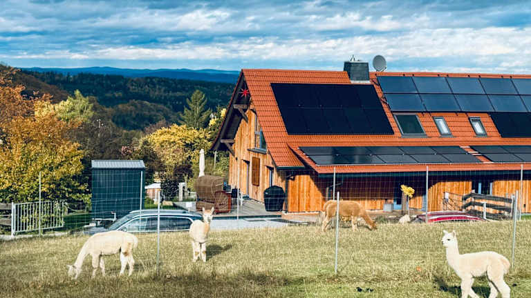 Die Ferienwohnung TOP moderne FeWo - Alpakahof zum Himmelreich verfügt über einen Garten, eine Terrasse mit Weitblick und Grillmöglichkeiten. Es handelt sich um eine Nichtraucherunterkunft, die von einem privaten Gastgeber betrieben wird und verschiedene Annehmlichkeiten für einen komfortablen Aufenthalt bietet, einschließlich kostenfreiem WLAN und einem Parkplatz.