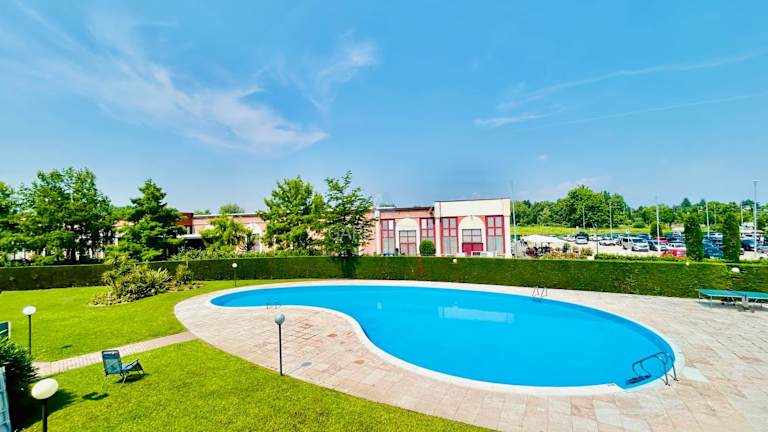 Topazio Apartment - Vista piscina a 150m dal Lago bietet Übernachtungsmöglichkeiten mit saisonalem Außenpool. Die Ferienwohnung verfügt über einen eigenen Pool und einen Garten. Kostenfreies WLAN ist ebenfalls vorhanden. Die Unterkunft ist ideal für einen erholsamen Aufenthalt, bietet eine Terrasse mit Stadtblick und ist geeignet für Gäste, die eine ruhige Umgebung suchen.