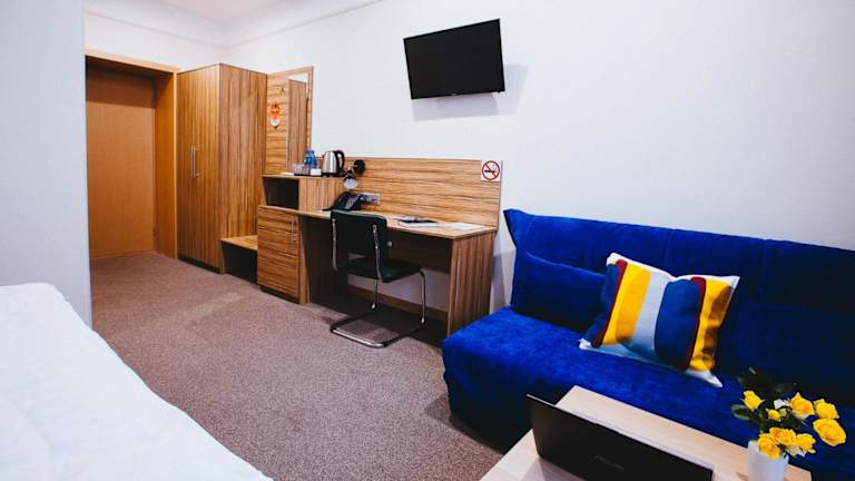 Das Torgay Hotel befindet sich in Astana und liegt nur 1 km vom Sportpalast Kasachstan entfernt. In der Nähe finden Sie das Einkaufszentrum Evraziya sowie den Platz des Kriegerdenkmals. Der Flughafen Astana ist nur 20 km vom Hotel entfernt, was eine bequeme Anreise ermöglicht. Die zentrale Lage des Hotels bietet Ihnen die Möglichkeit, die Stadt und ihre Sehenswürdigkeiten bequem zu erkunden.