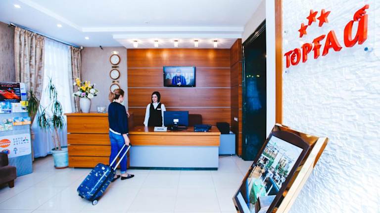 Das Torgay Hotel in Astana bietet Ihnen eine ideale Lage in der Innenstadt, nur wenige Schritte von verschiedenen Sehenswürdigkeiten entfernt. Mit komfortablen Zimmern, kostenlosem WLAN und einer 24-Stunden-Rezeption ist es die perfekte Wahl für Ihren Aufenthalt in der Hauptstadt Kasachstans. Genießen Sie die orientalische und europäische Küche im Garden Restaurant und entspannen Sie bei internationalen Cocktails in der Torgay Bar.